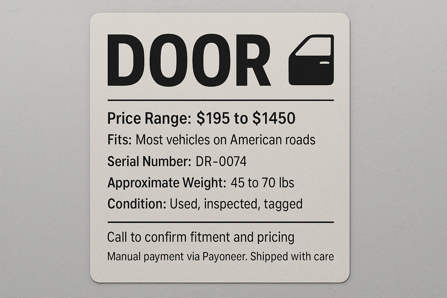 Manual payment via Payoneer. Shipped with care